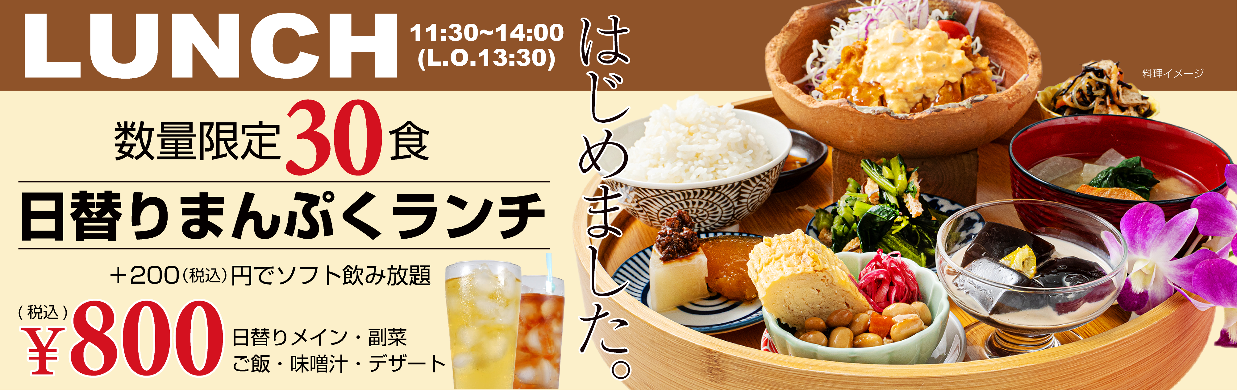 ※時間延長をご希望の場合は、次の予約がない場合のみ可能とし、延長料金として30分ごとにドリ ンク料お一人様550円(税込)を頂戴いたします。